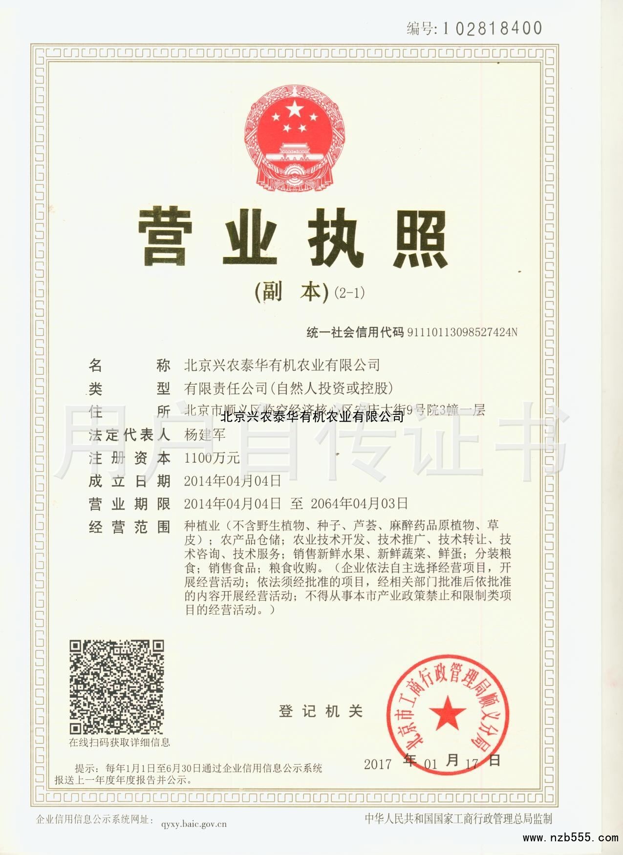 北京興農泰華有機農業有限公司
