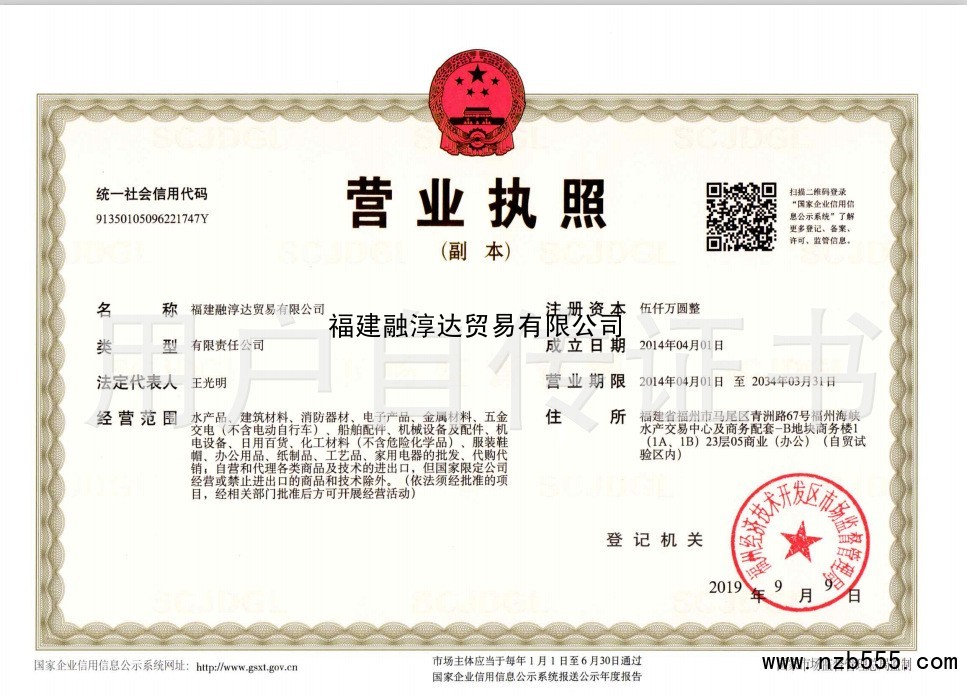 榮譽(yù)資質(zhì) 福建融淳達(dá)貿(mào)易有限公司