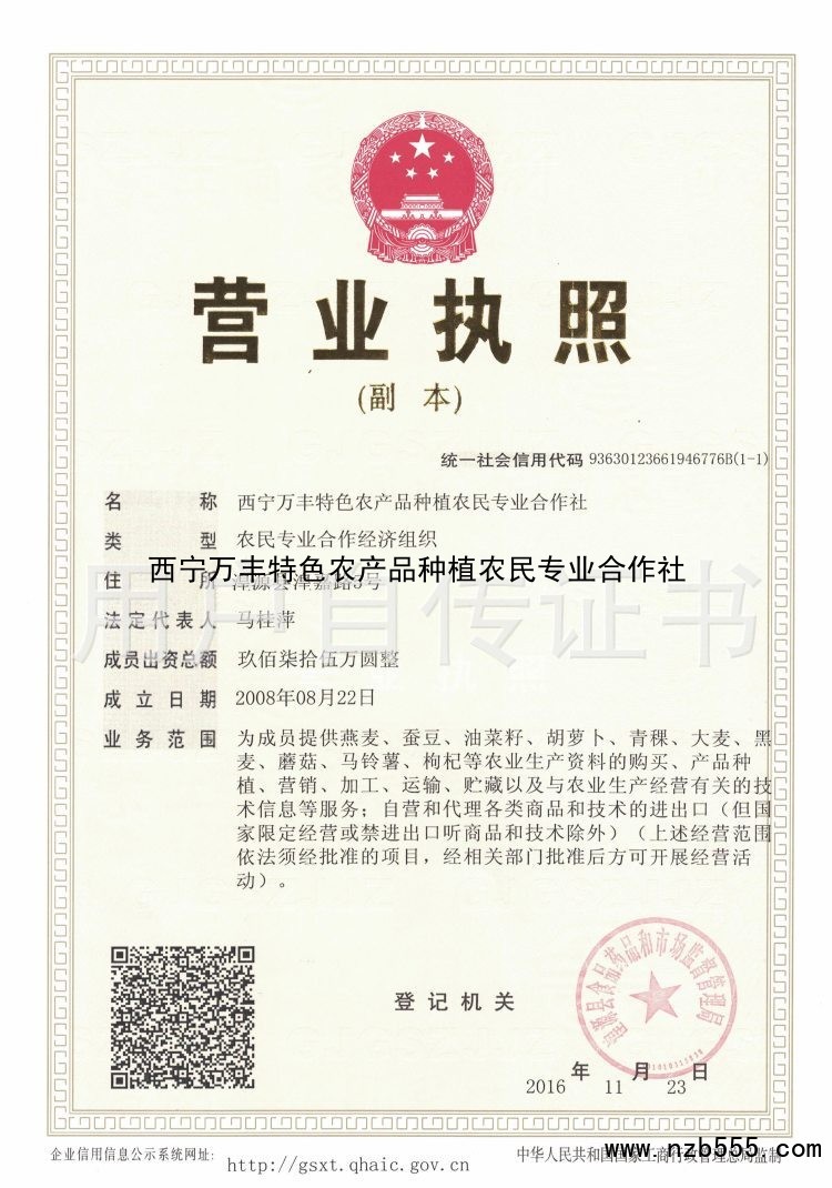西寧萬豐特色農產品種植農民專業合作社