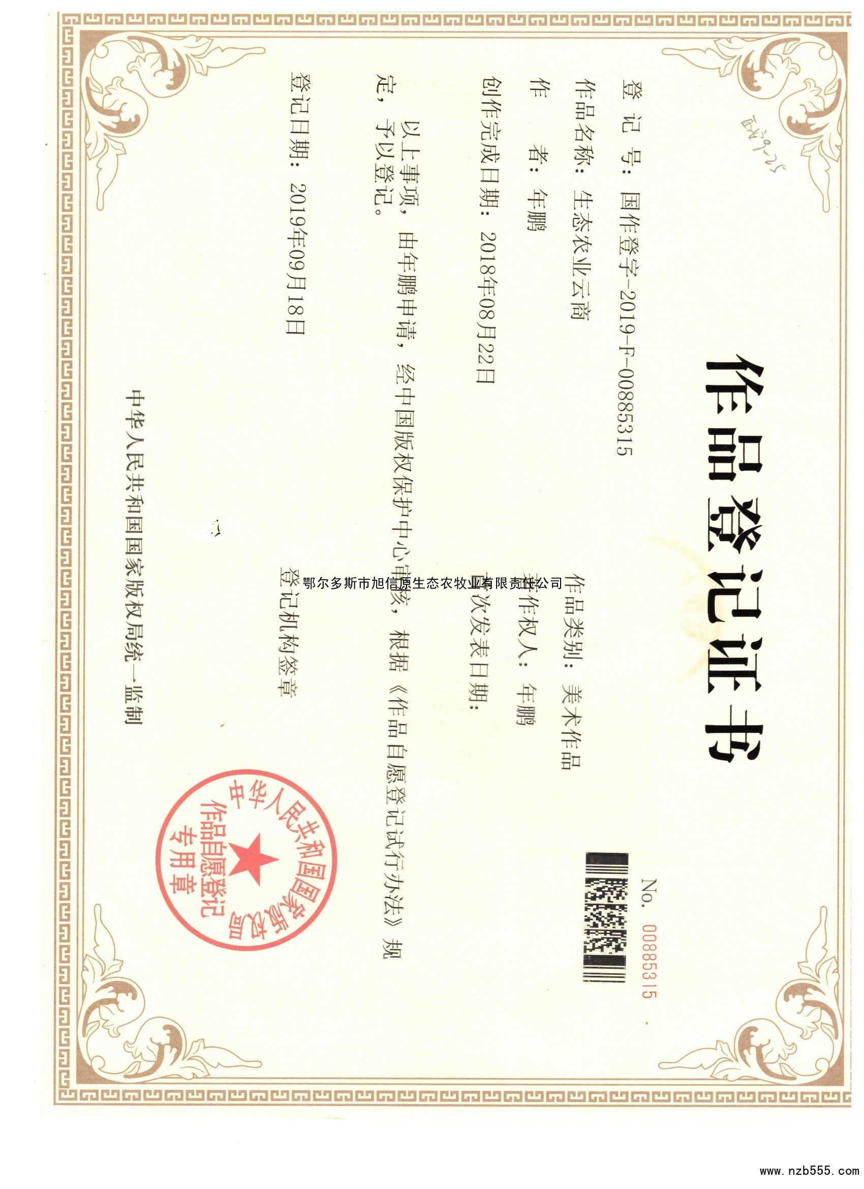 作品登記證書 生態農業云商