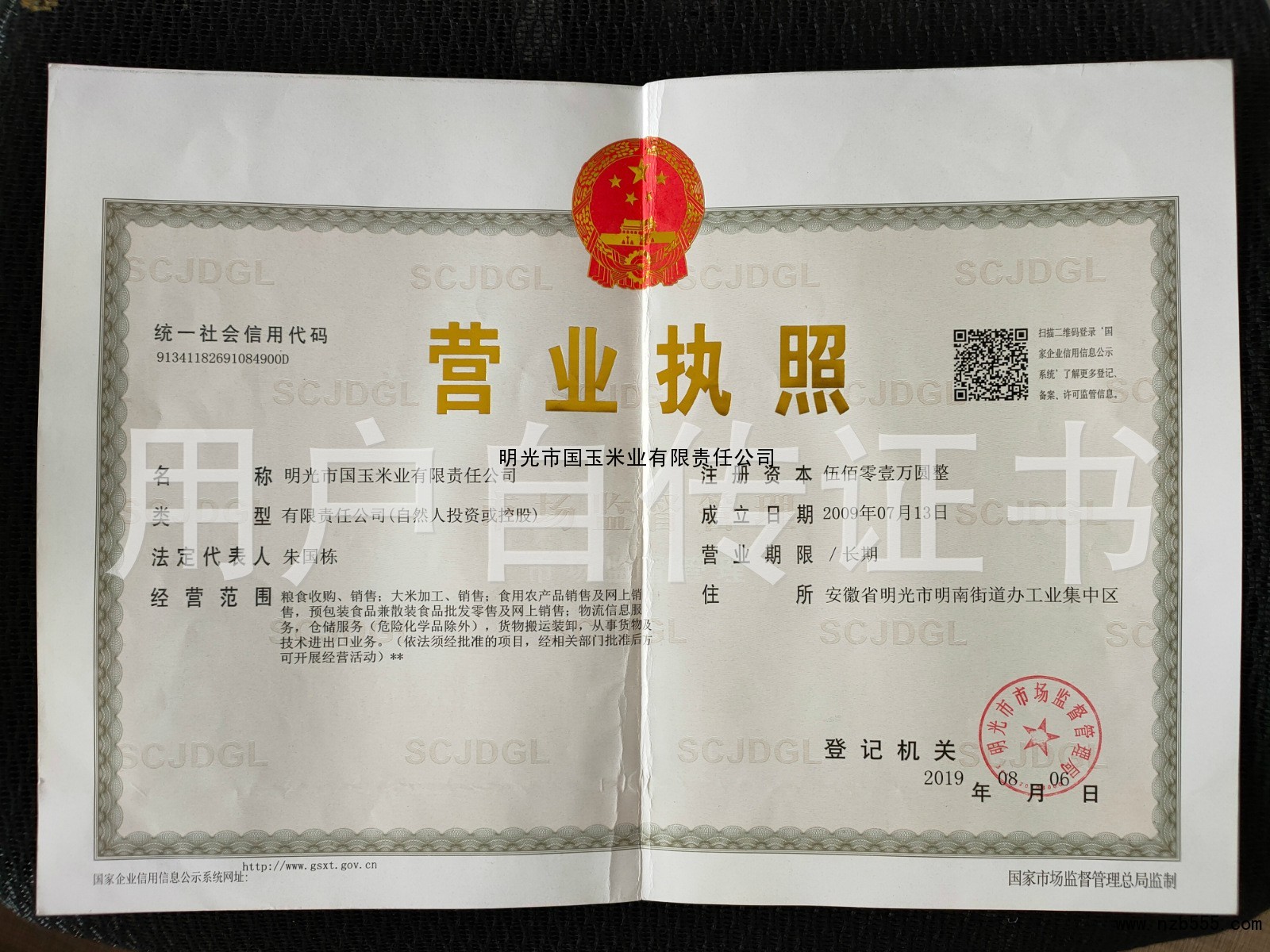 | 發(fā)證機(jī)構(gòu): | 明光市市場(chǎng)監(jiān)督管理局 | 發(fā)證時(shí)間 : | 2019-08-06 |