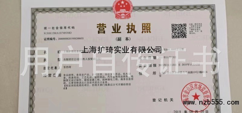 | 發(fā)證機(jī)構(gòu): | 上海市金山區(qū)市場(chǎng)監(jiān)督管理局 | 發(fā)證時(shí)間 : | 2019-08-20 |