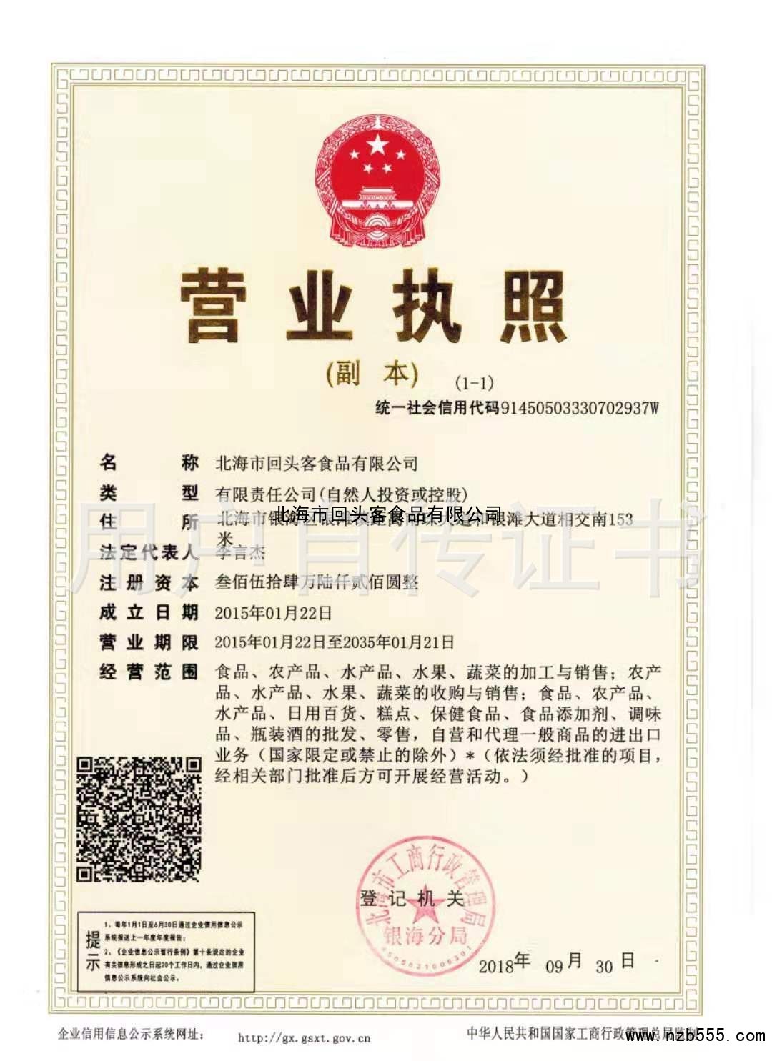 北海市回頭客食品有限公司