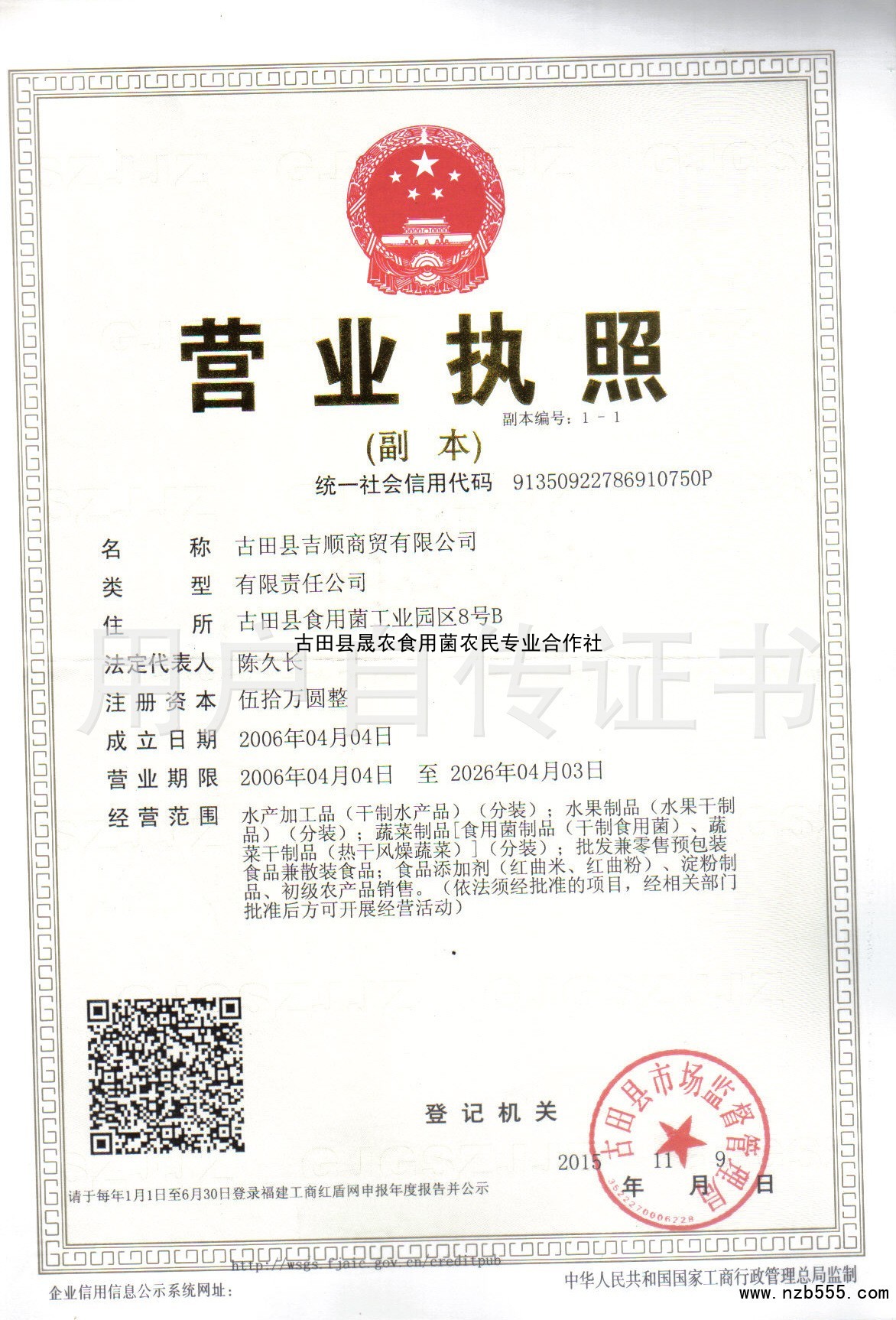 古田縣晟農食用菌農民專業合作社