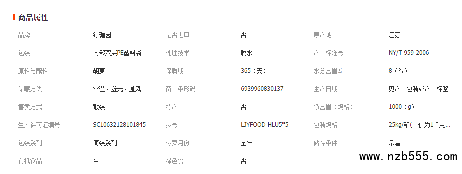 綠珈園 脫水胡蘿卜干 脫水胡蘿卜粒1000克 水分低干度好可磨5*5mm