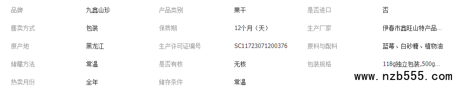 九鑫山珍有機(jī)藍(lán)莓干大顆粒獨(dú)立包裝
