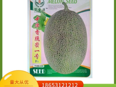特征特性: 中熟甜瓜雜交一袋種,果實發育期45天左右,果實橢圓,麻綠皮帶墨綠斑點,網紋細密,單瓜重2.5-3公斤,果肉桔紅,肉質細、松、脆、香、超甜、爽口,中心平均折光含糖17-18%,抗白粉病,適合早春和秋季保護地栽培。除西藏外,大部分地區均可種植。