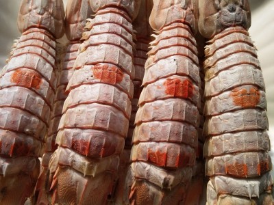 我們的蝦蛄干在漁船上打撈上來,是鮮活的就放在鍋里煮熟了,再曬干,曬到不能再干,所以有的蝦蛄干是彎彎的