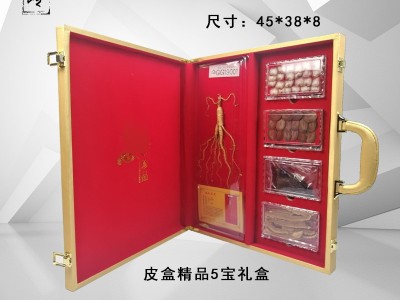 供應長白山山參東北人參靈芝鹿鞭鹿茸五寶禮盒 皮盒