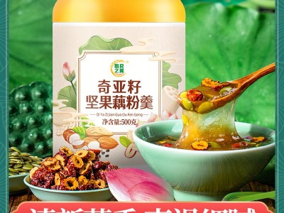 奇亞籽堅果顆粒藕粉批發(fā) 早餐代餐粉免煮即食沖飲 500g罐裝藕粉