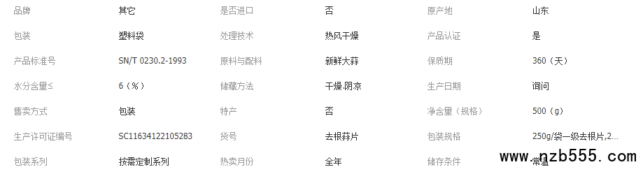 品 名:去根蒜片 售賣方式:通貨包裝