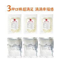 豌豆雜醬面總重是281.5g內(nèi)含:耙豌豆50g+醬香雜醬50g+調(diào)味醬50g+重慶小面120g+榨菜絲16g+花生碎5g+香蔥包0.5g