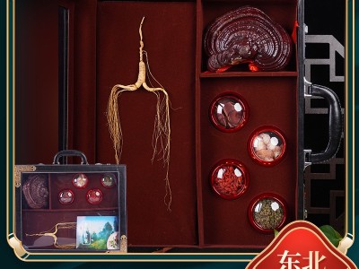東北特產人參禮盒產地批發靈芝六寶禮盒西洋參片鹿茸片量大價優