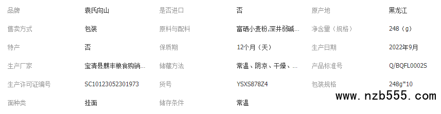 袁氏向山全麥富硒掛面